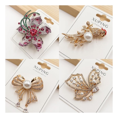 XUPING takı toptan sentetik kübik zirkonya İnci çiçek kelebek hayvan yay tüy moda broş Pin kadınlar