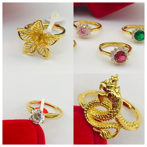 XUPING gioielli all'ingrosso alla rinfusa da donna uomini rame pietra colorata drago fiore oro 24K placcato anello nuziale