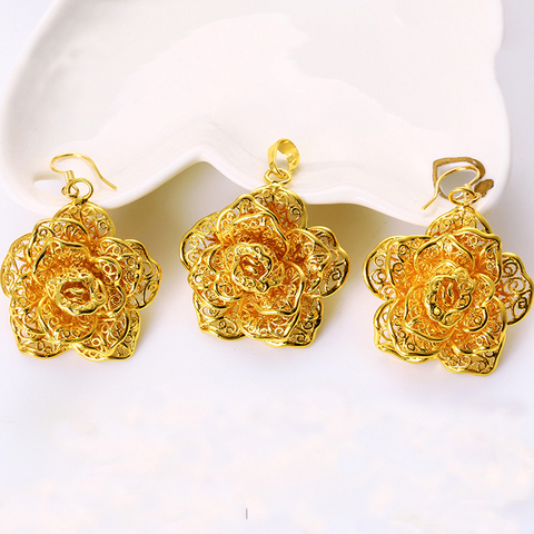 Xuping Schmuck hochwertige hohle 24 Karat vergoldete goldene Rose Hochzeits schmuck Set für Frauen