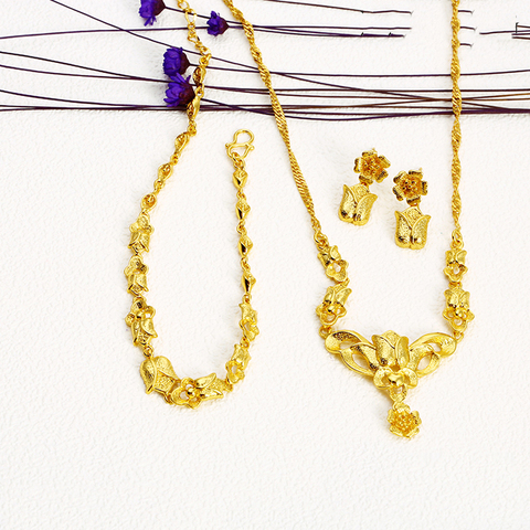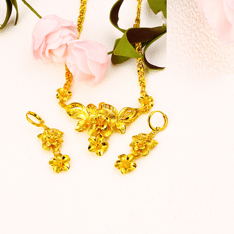 Xuping Schmuck 24 Karat vergoldet Messing Blume Gold Schmuck Sets